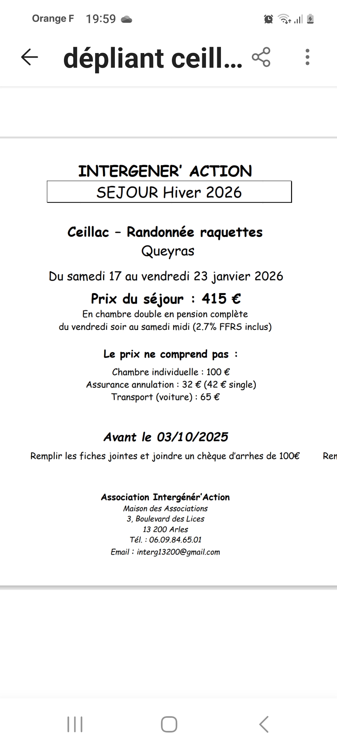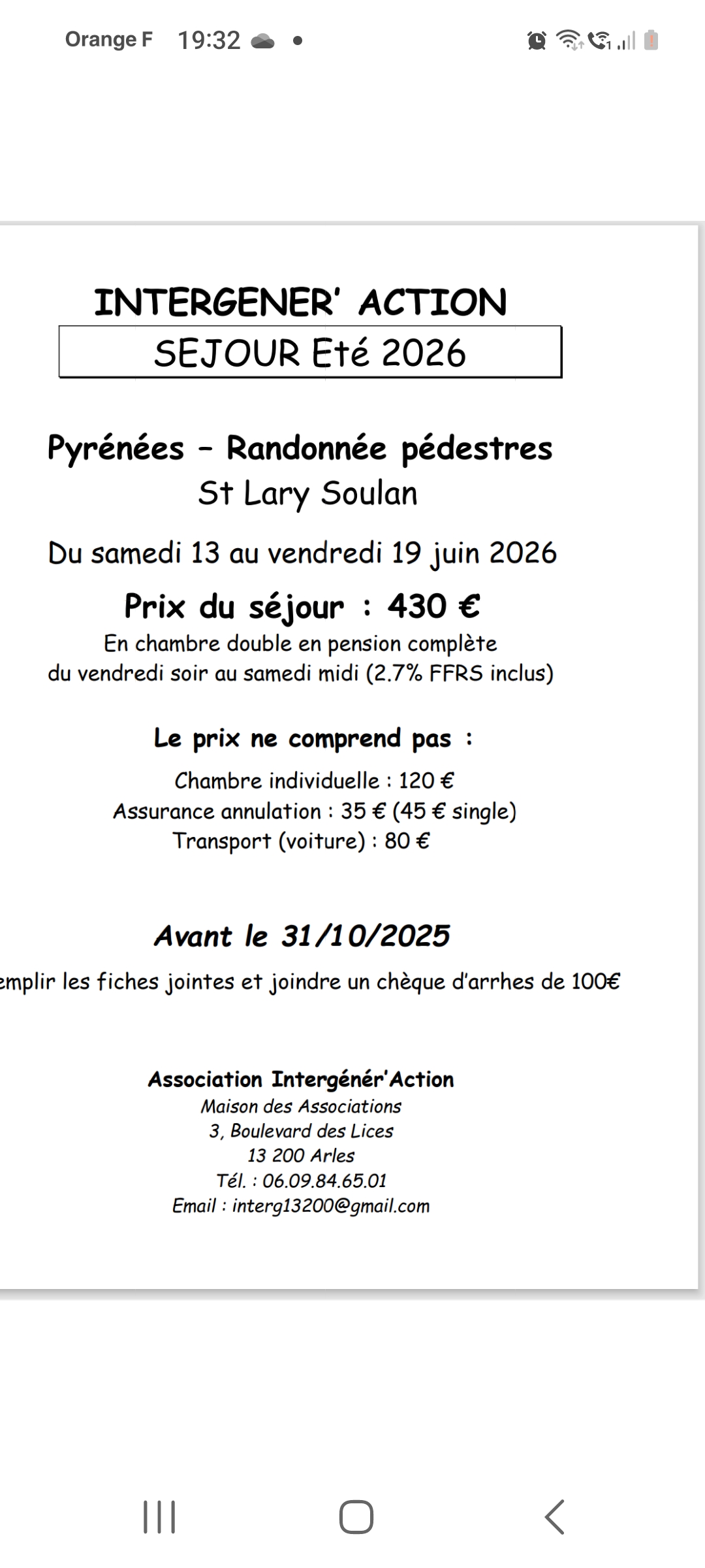 Ci joint le séjour d'été 2026 à Saint Lary Soulan du 13 au 19juin